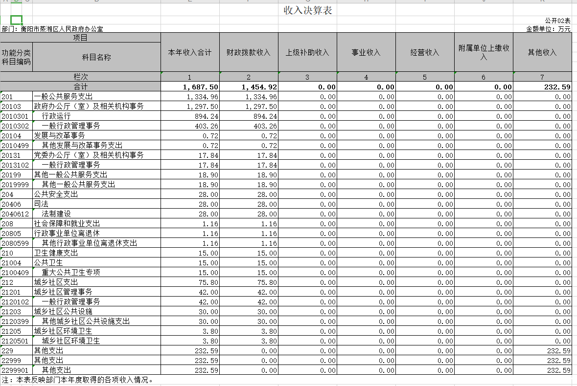 2019年度衡阳市蒸湘区人民政府办公室部门决算