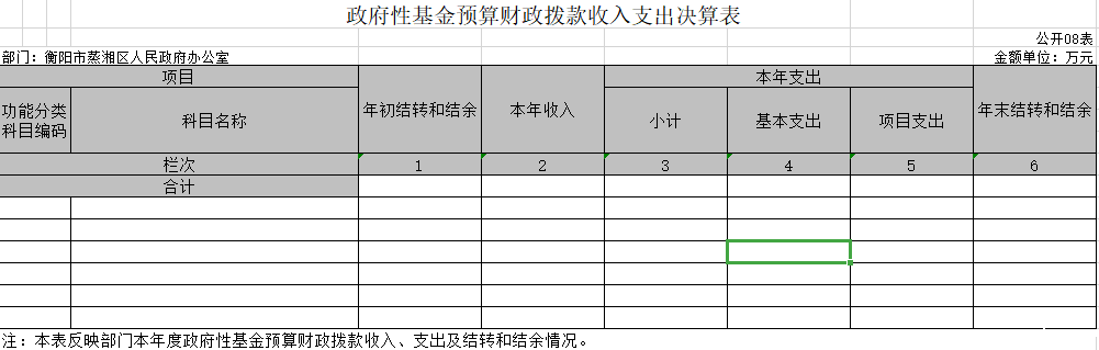 4、上年结转:指以前年度尚未完成、结转到本年按有关规定继续使用的资金。
